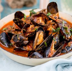 Mosselen op spaanse wijze (Huisgemaakte tomatensaus|knoflook|chorizo worst)