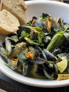 Mosselen met thaise cury (Groene curry|anijs liqeur|knoflook|room)