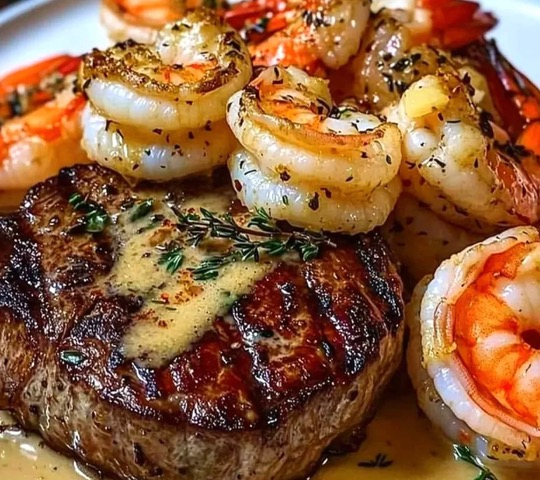 Tournedos met gambas |surf&turf (Jus van roomboter)